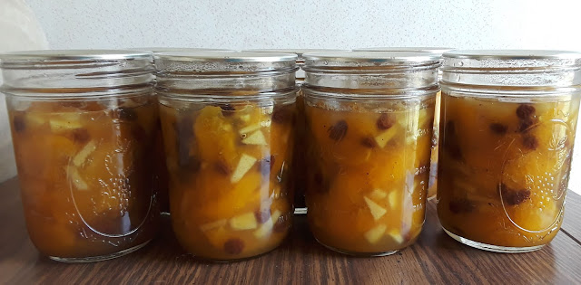 While that was cooking I cleaned up the kitchen once again to prepare for round four of canning. This round was going to be the apricot jam so I set up the counter for peeling and slicing apricots next. It was only a small batch of jam, so things went fairly quickly with that. By the time the fourth round of canning was done for the day I was exhausted and called it a day to the sound of pinging jars as they sealed while they cooled on my table.